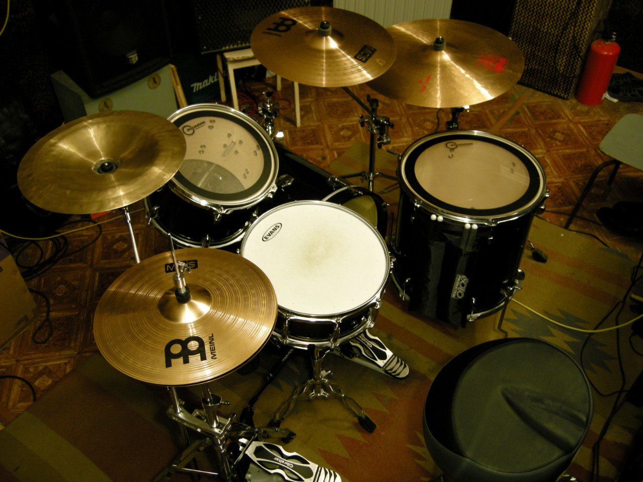 Денис Лебедев Сборная солянка из брэндов — бочка и томы Yamaha Gigmaker, малый Pearl Chad Smith, стойки Amati, Tama Roadpro и Sonor, стул Pearl, тарелки Meinl MCS, Wuhan и Paiste 2002, педали Gibraltar Intruder, палочки Ahead TSR.